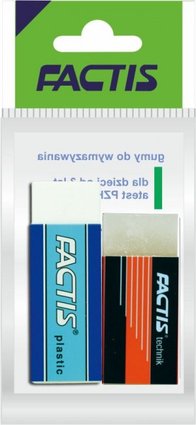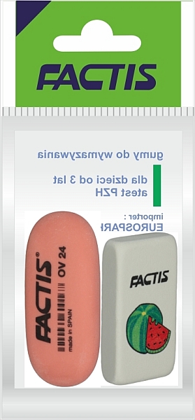 - każda gumka posiada indywidualny kartonik z nadrukowanym kodem kreskowym i zapakowana jest w folię chroniącą przed zabrudzeniami